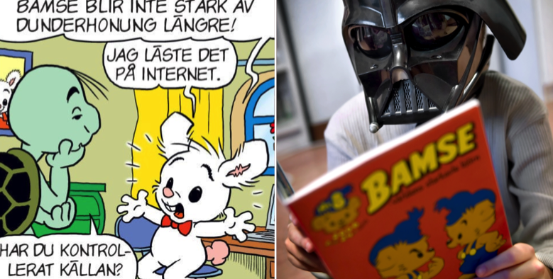 Stämmer det att Bamse inte längre blir stark av dunderhonung? Och finns det verkligen ett monster i skogen? Ett kommande nummer av tidningen Bamse har temat källkritik.