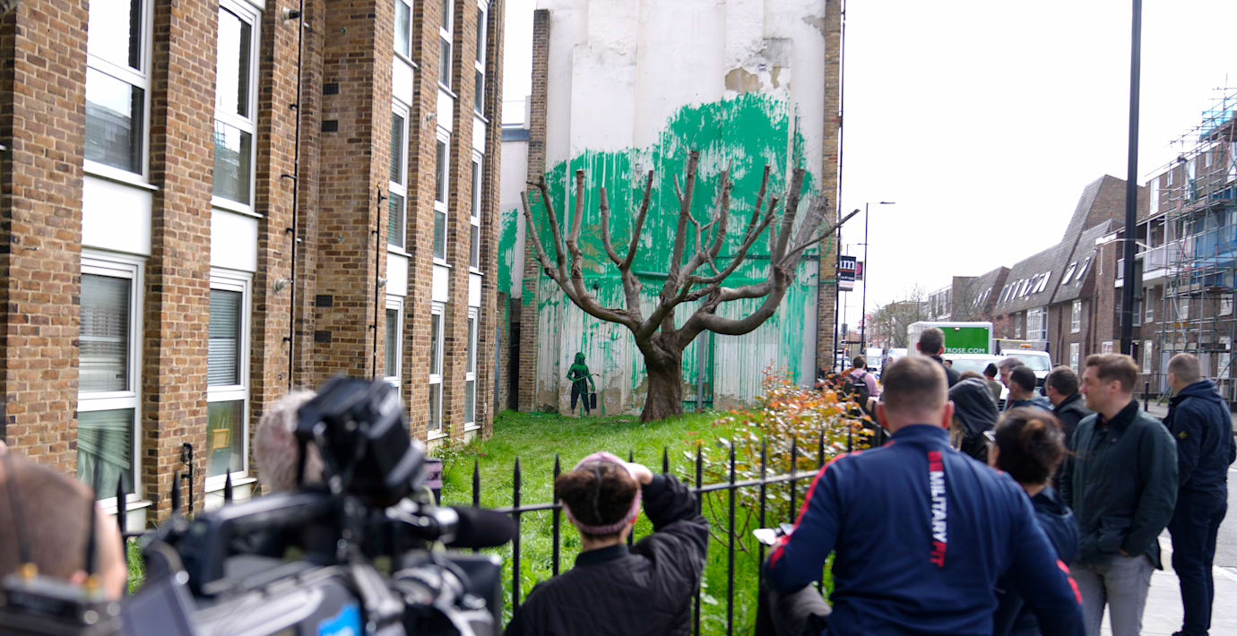 Banksys trädmålning har blivit övermålad