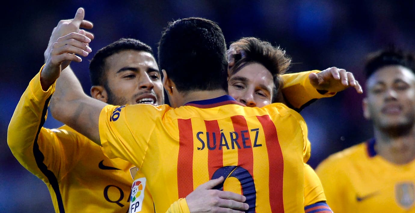 Luis Suárez stod för hela fyra av målen och både Neymar och Messi skrev in sig i målprotokollet.