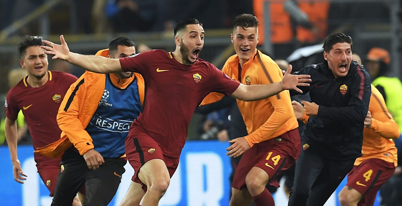 I den 82:a minuten exploderade det fullsatta Olimpico då Kostas Manolas nickade in 3–0 på hörna och skickade Roma till sin första semifinal i Champions League sedan säsongen 1983/1984.