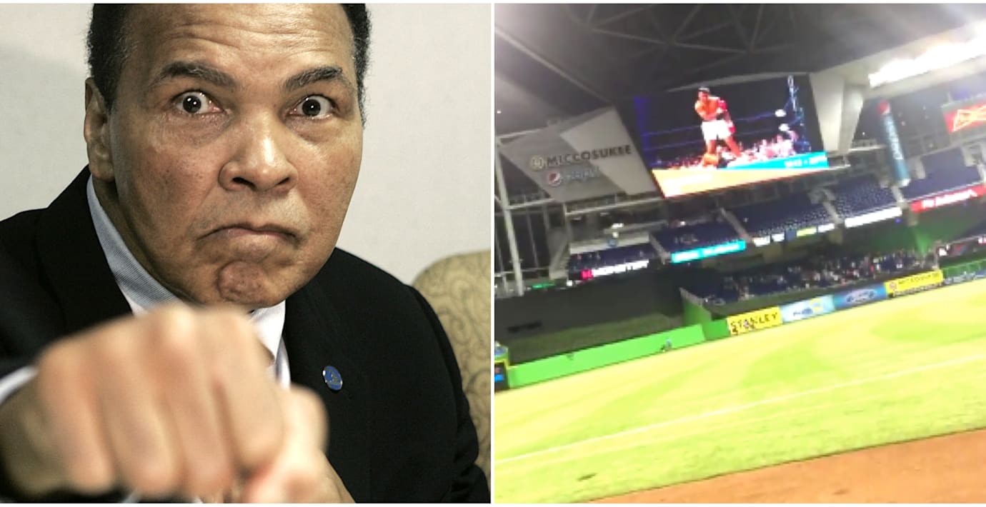 Strax efter Marlins möte med New York Mets pryddes den stora tv-monitorn på klubbens arena med en bild till Muhammad Alis minne.