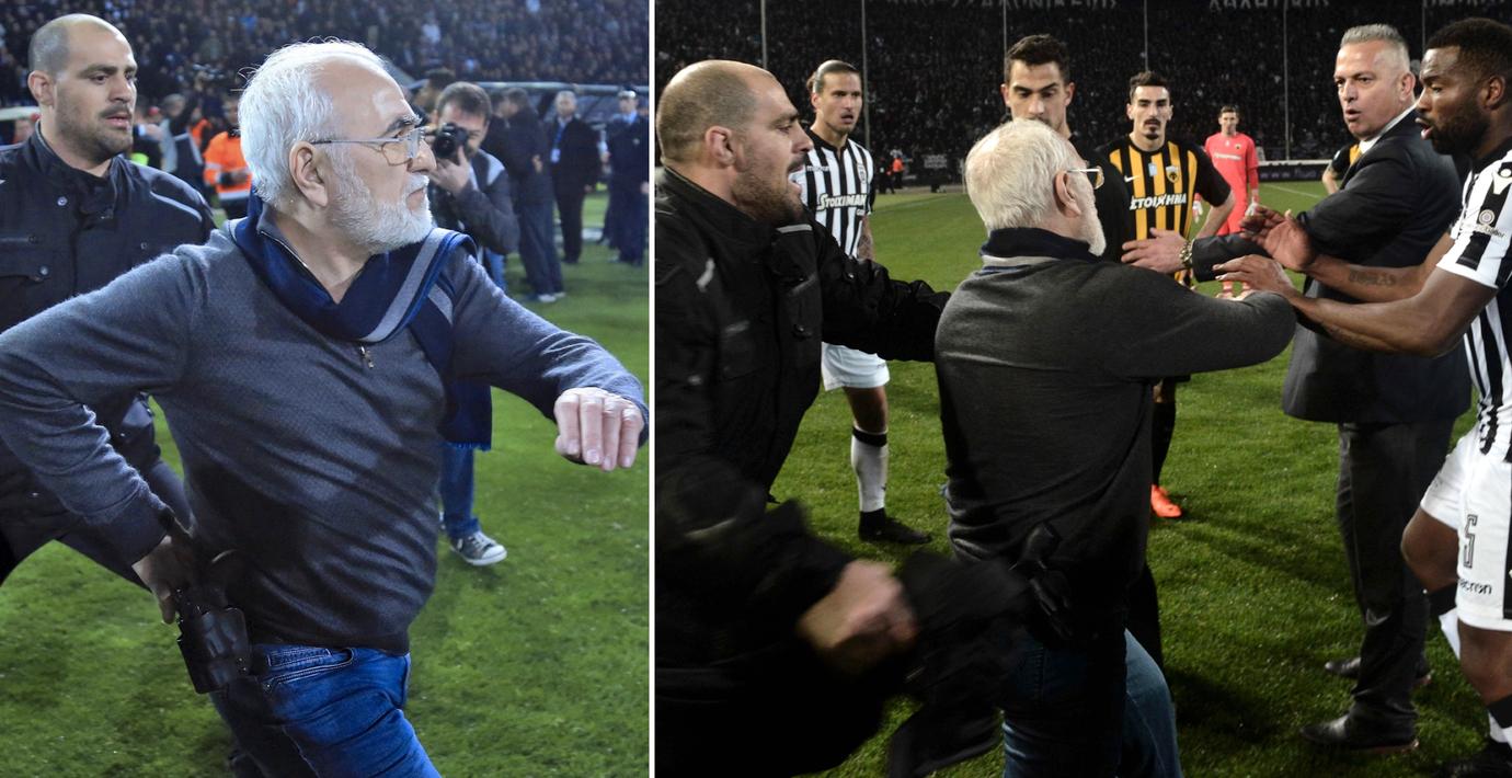 Savvidis tog sig in på planen under Paoks match mot AEK Aten för att konfrontera domaren efter att Paok fått ett mål bortdömt. Han hade ett pistolliknande föremål i ett hölster och hotade domaren med att ”hans karriär är över”. Händelsen ledde till att den grekiska ligan stoppades på obestämd tid.