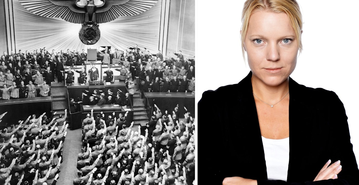 ”Året är 1932 och den här gången får NSDAP, Nationalsocialistiska tyska arbetarpartiet, 37 procent av rösterna och blir därmed Tysklands största parti.”