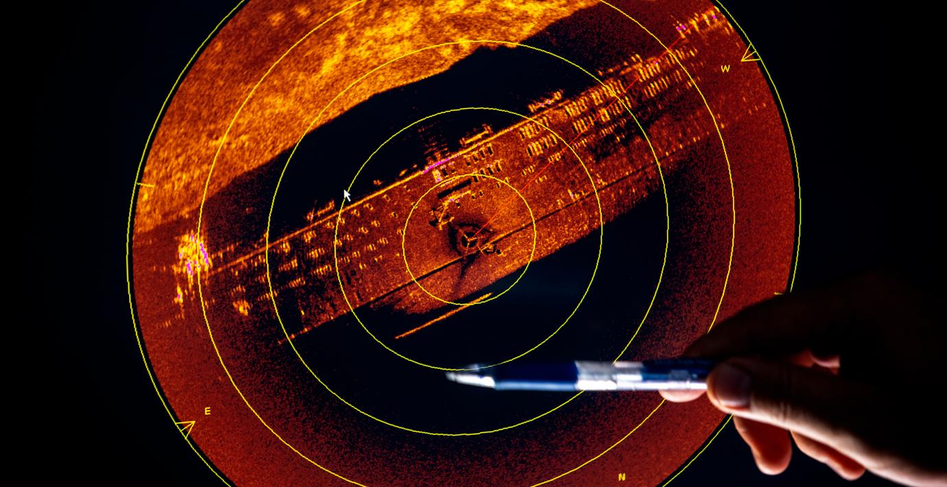 Sonarbild på Estonia tagen med Mesotechsystemet. (Stefan Jerrevång/TT / TT NYHETSBYRÅN)