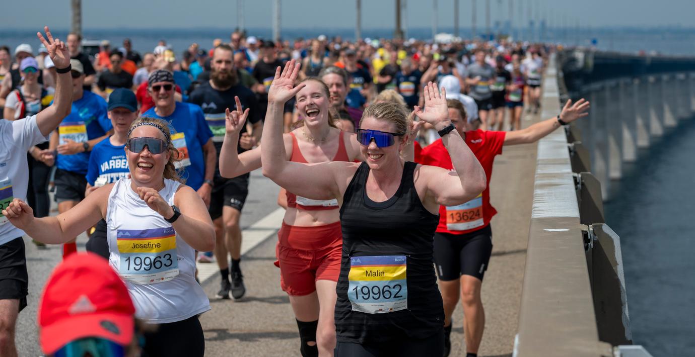 Glada löpare på Öresundsbron i går. (Johan Nilsson/TT)