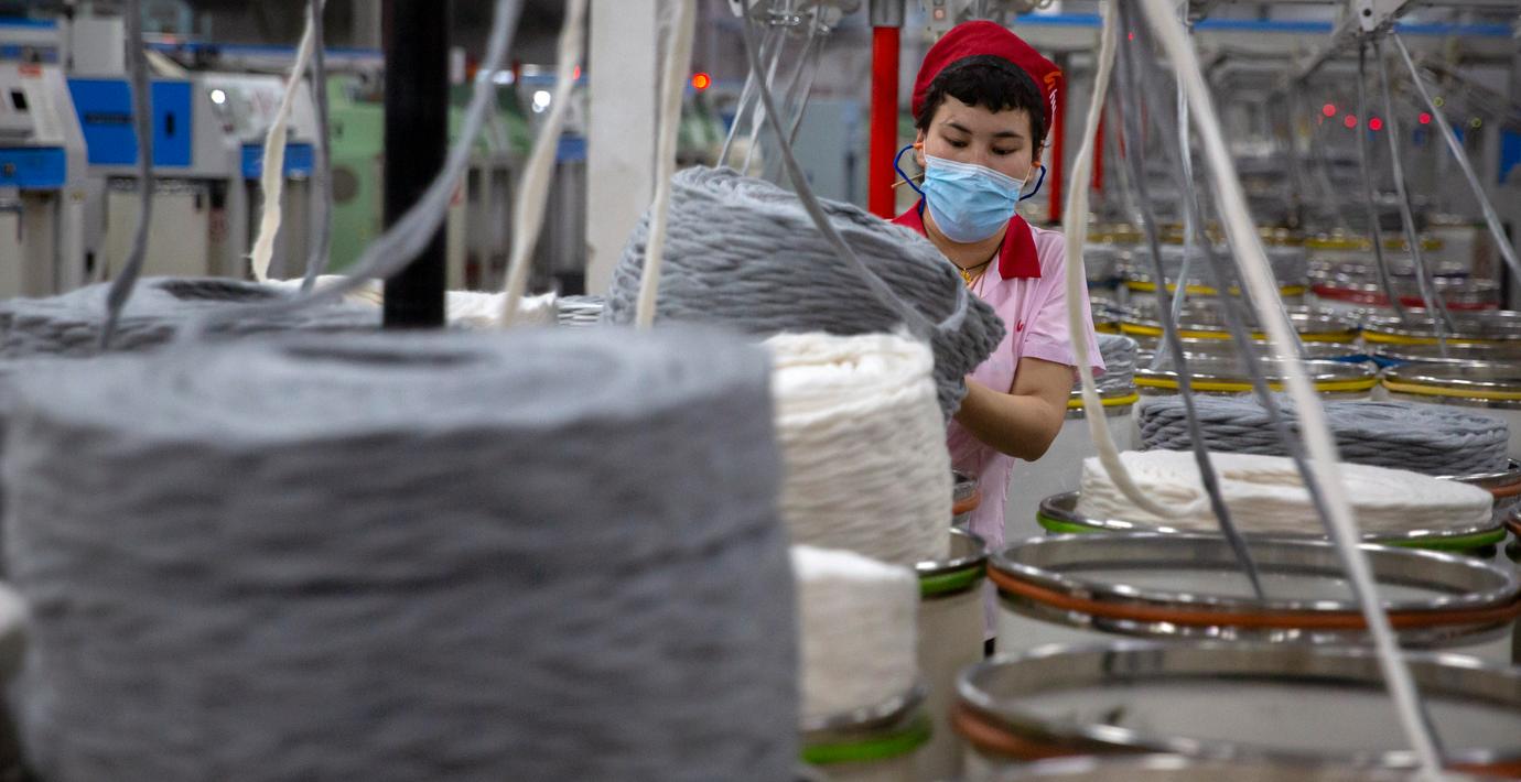 Kvinna på garnfabrik i Xinjiang-provinsen. Arkivbild. (Mark Schiefelbein / AP)