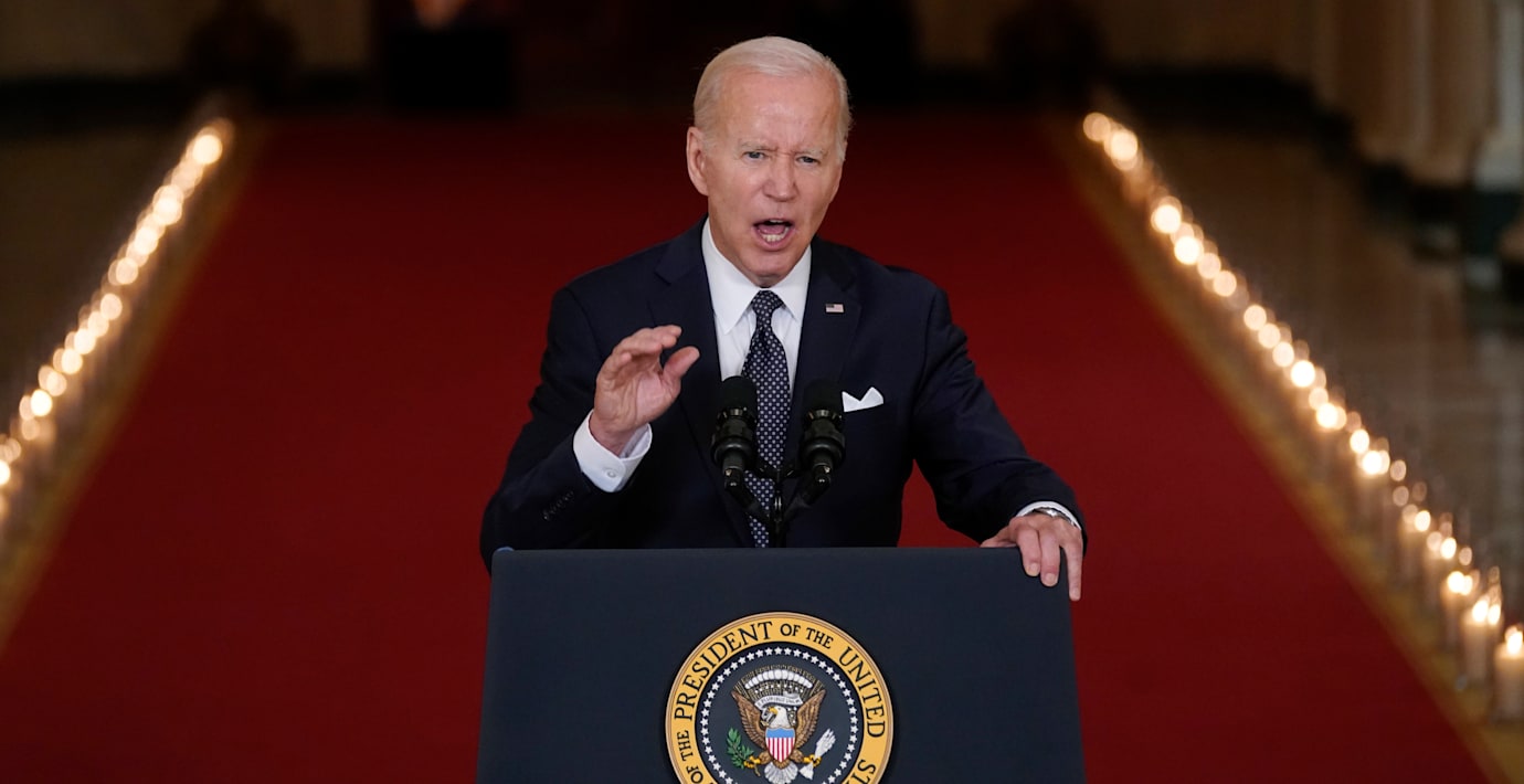 Bakom talarpodiet stod 56 tända ljus uppställda längs en korridor, för att representera de amerikanska stater och territorier som drabbats av vapenvåldet. Biden kallade den majoritet av republikanska senatorer som vägrat att stödja hårdare vapenlagar för "samvetslösa".