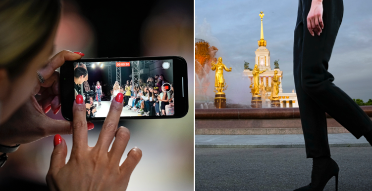En åskådare filmar i Zaryadye-parken där stora delar av modeveckan hålls