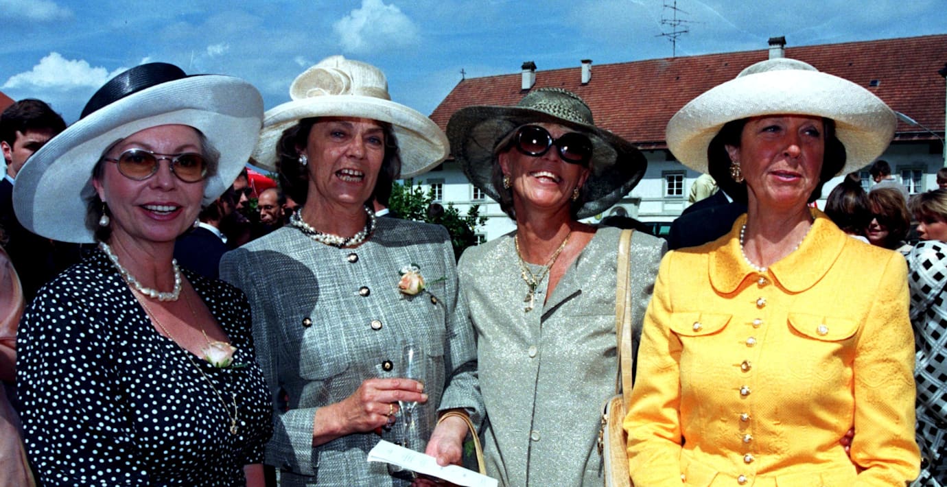 Désirée i gult tillsammans med systrarna under ett bröllop i Tyskland 1998