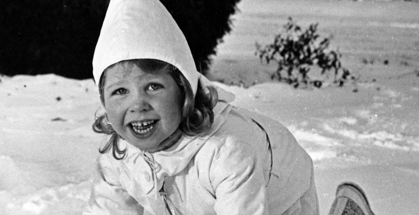 Désirée leker i snön på Drottningholm, cirka 3 år gammal