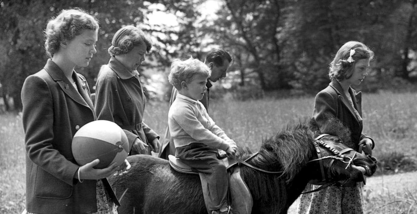 1950 leder hon den blivande kungen på en ponny