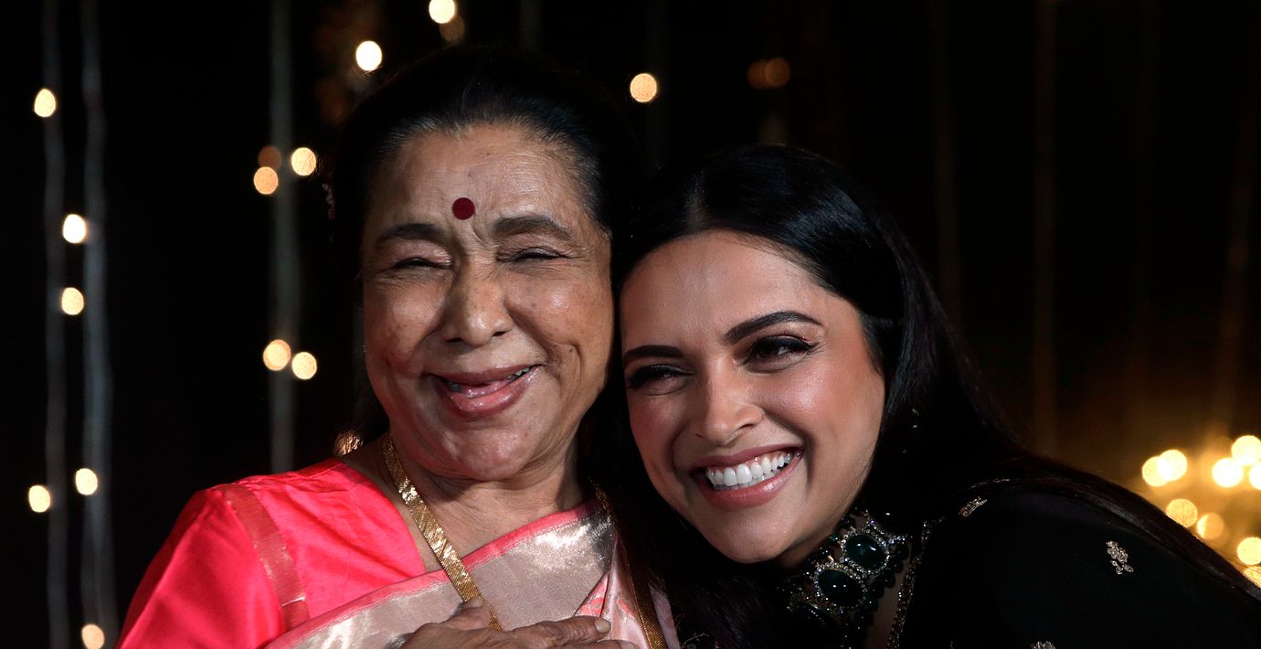 Asha Bhosle tillsammans med skådespelaren Deepika Padukone 2018. (Rajanish Kakade/AP)