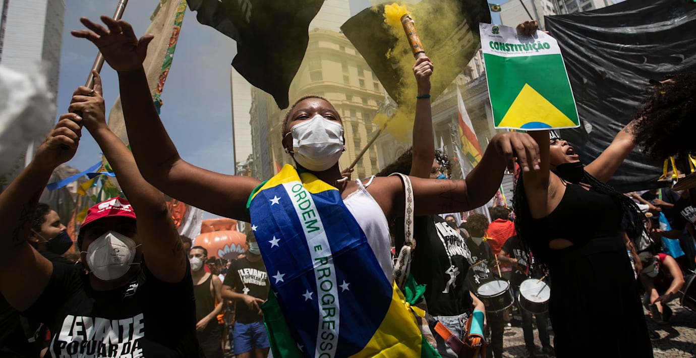 Demonstranterna är bland annat kritiska mot hanteringen av coronapandemin som krävt nära 600 000 liv i Brasilien.