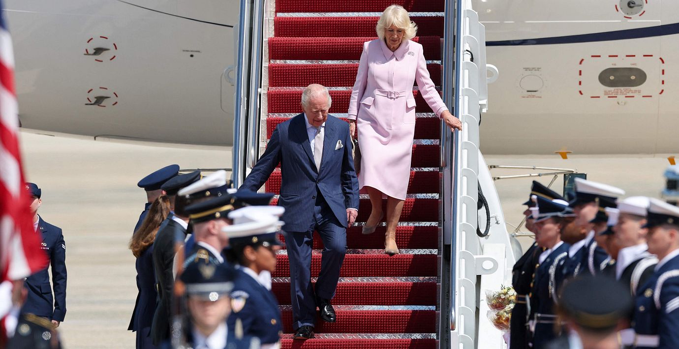 Storbritanniens kung Charles och drottning Camilla landade på flygbasen Joint Base Andrews utanför Washington DC på måndagskvällen, svensk tid, rapporterar flera medier.