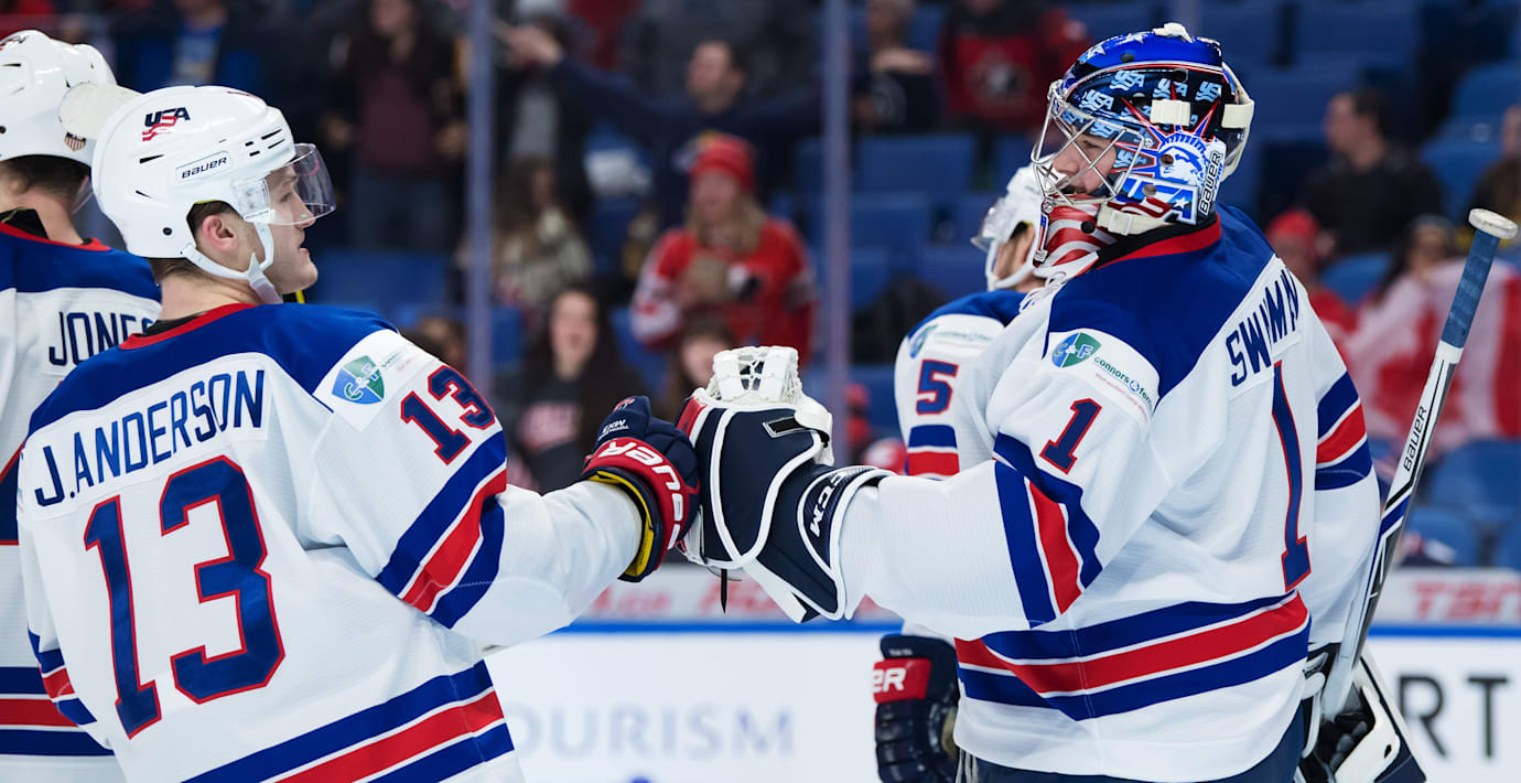 Kieffer Bellows gjorde två av målen och blev därmed USA:s meste målskytt under en JVM-turnering. Trent Frederic stod för fyra av vinnarlagets mål i bronsmatchen.