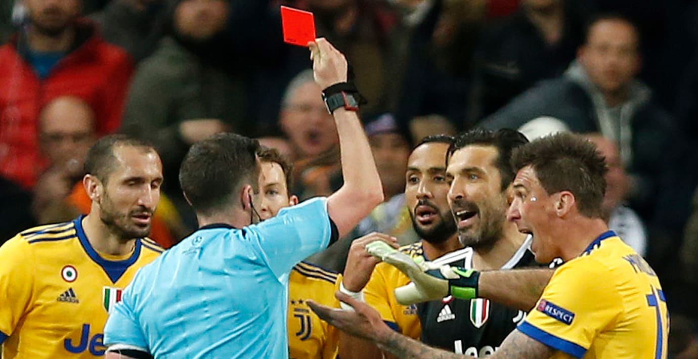 Det var i Champions League-matchen mellan Juventus och Real Madrid som Buffon riktade hård kritik mot domaren Michael Oliver efter att Real tilldömts en straff i slutminuterna. Buffon sa bland annat att domaren ”har en påse sopor där hjärtat borde sitta”.