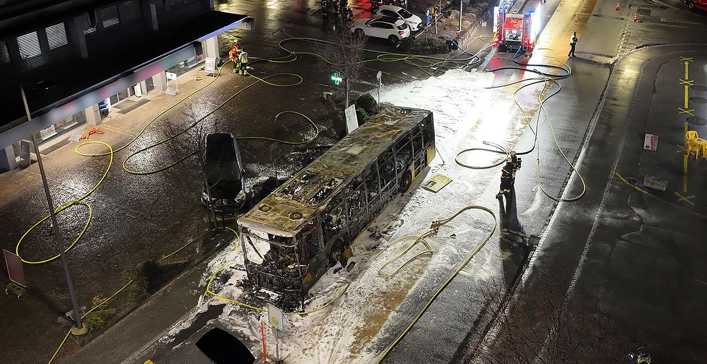 Det var i tisdags kväll som mannen gick ombord på bussen i småstaden Kerzers, två mil väster om huvudstaden Bern. Han hade två väskor med sig ombord, och vid något tillfälle ställde han sig upp, hällde bensin över sig och tände på.