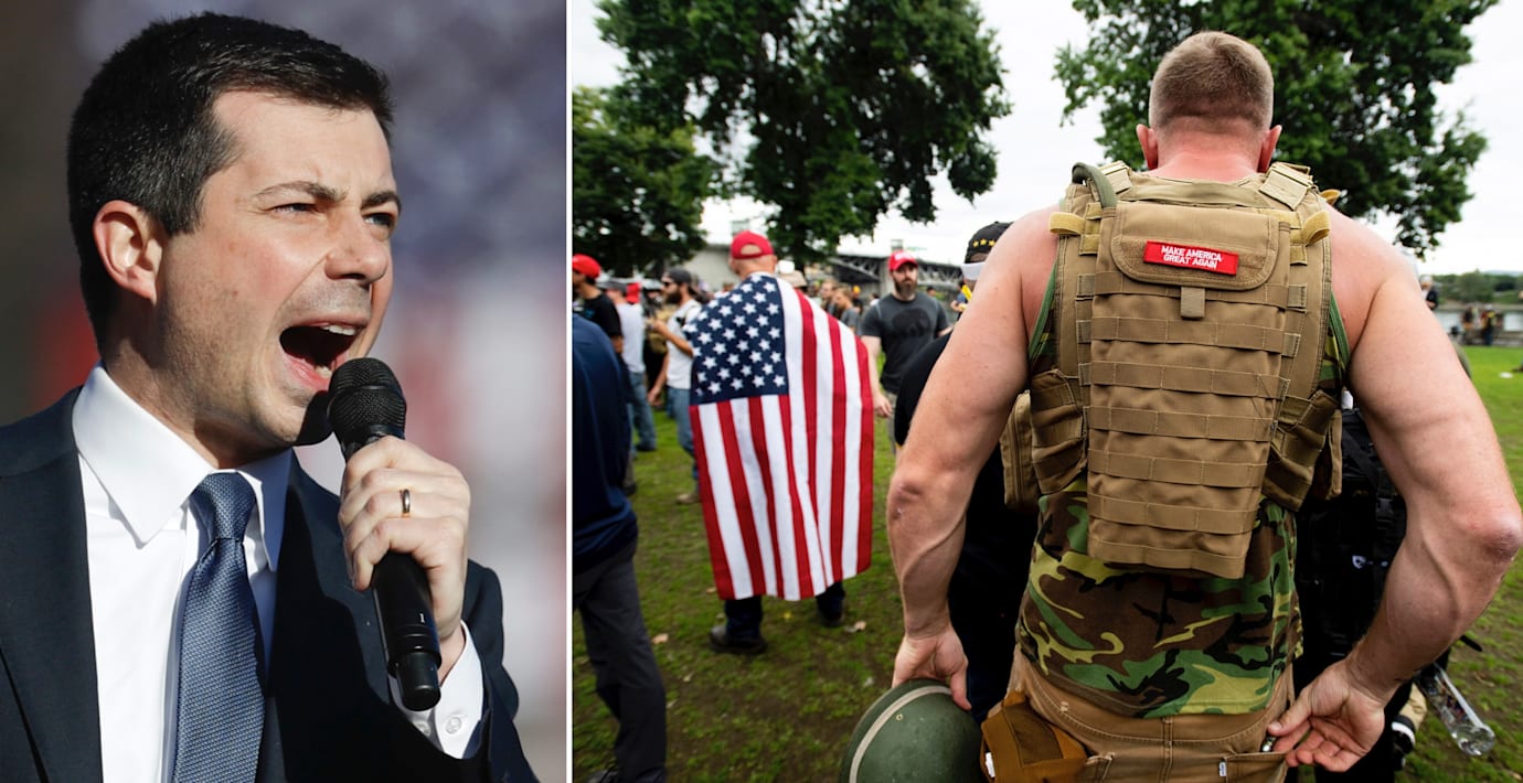 Pete Buttigieg, som kampanjade för att bli Demokraternas presidentkandidat, ifrågasätter att Donald Trump inte fördömde gruppen Proud Boys under nattens debatt: