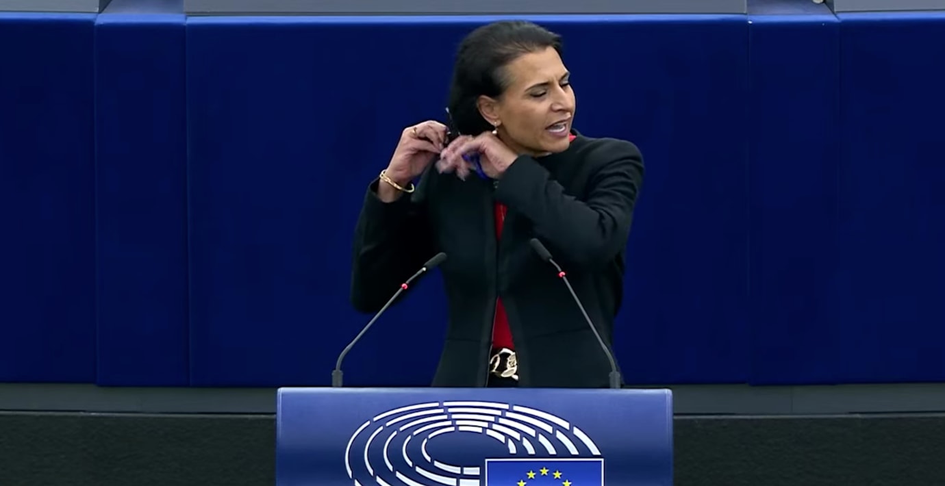Centerpartiets Abir Al-Sahlani klippte av sig håret när protesterna i Iran under tisdagen debatterades i EU-parlamentet.