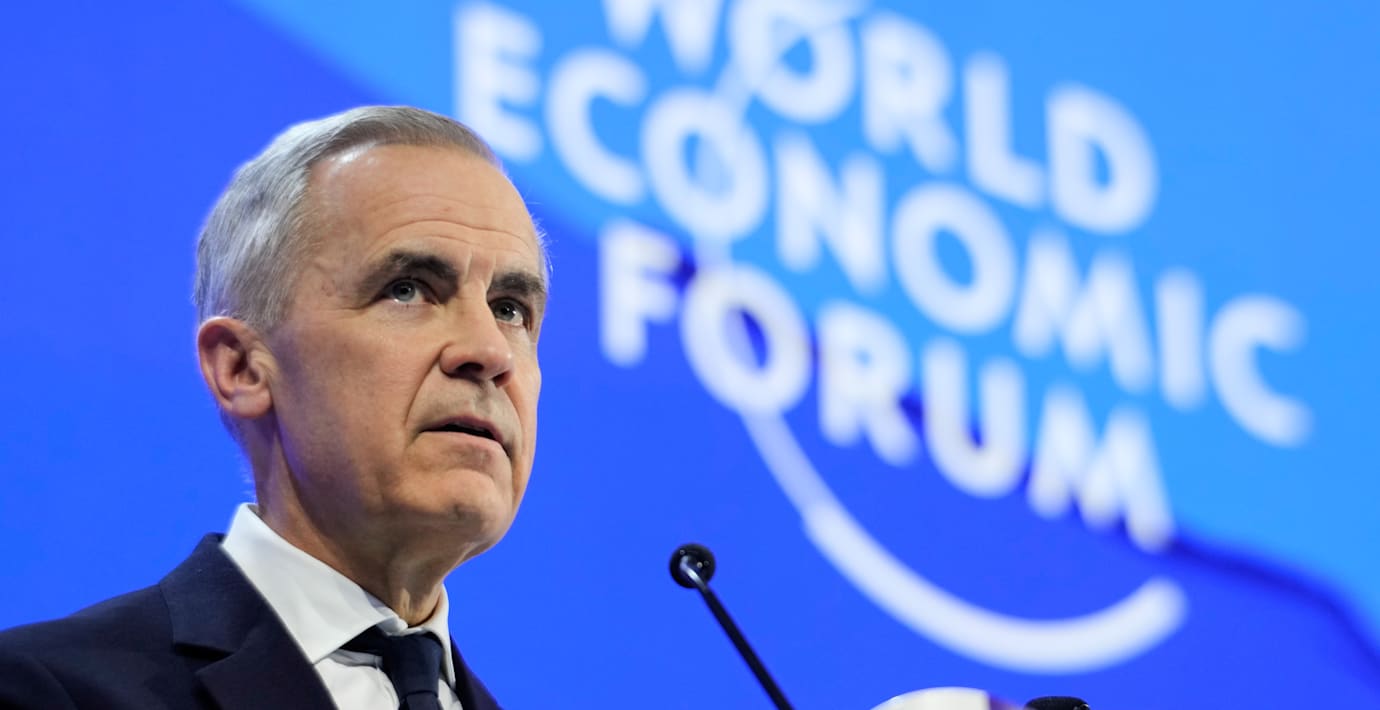 Carney hyllades i Davos – drar ifrån på hemmaplan