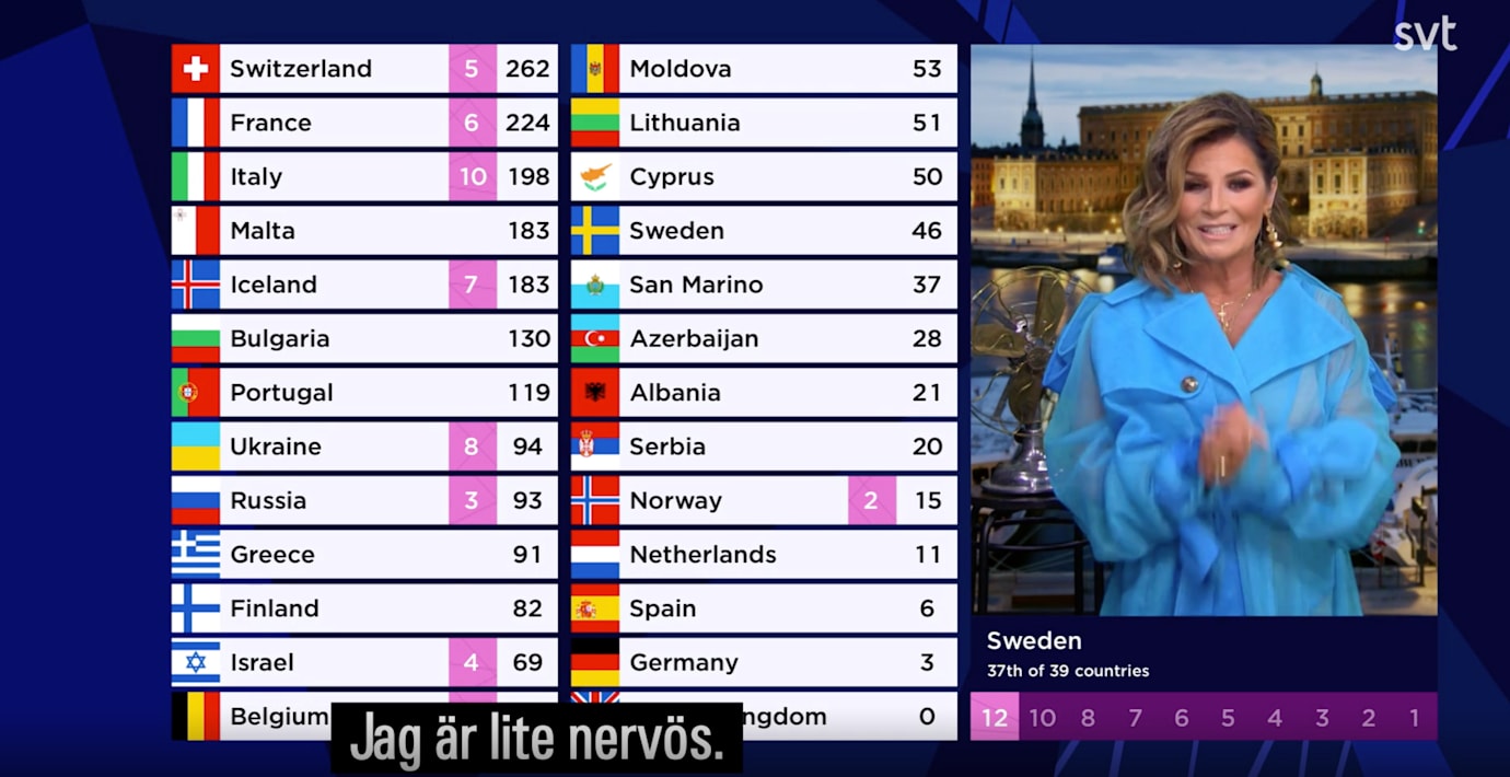 En hjälpande ljudteknikers arm kom in i rutan och Carolas ord ville inte landa rätt. En hel del gick fel när artisten skulle dela ut Sveriges poäng under Eurovision Song Contest-finalen.