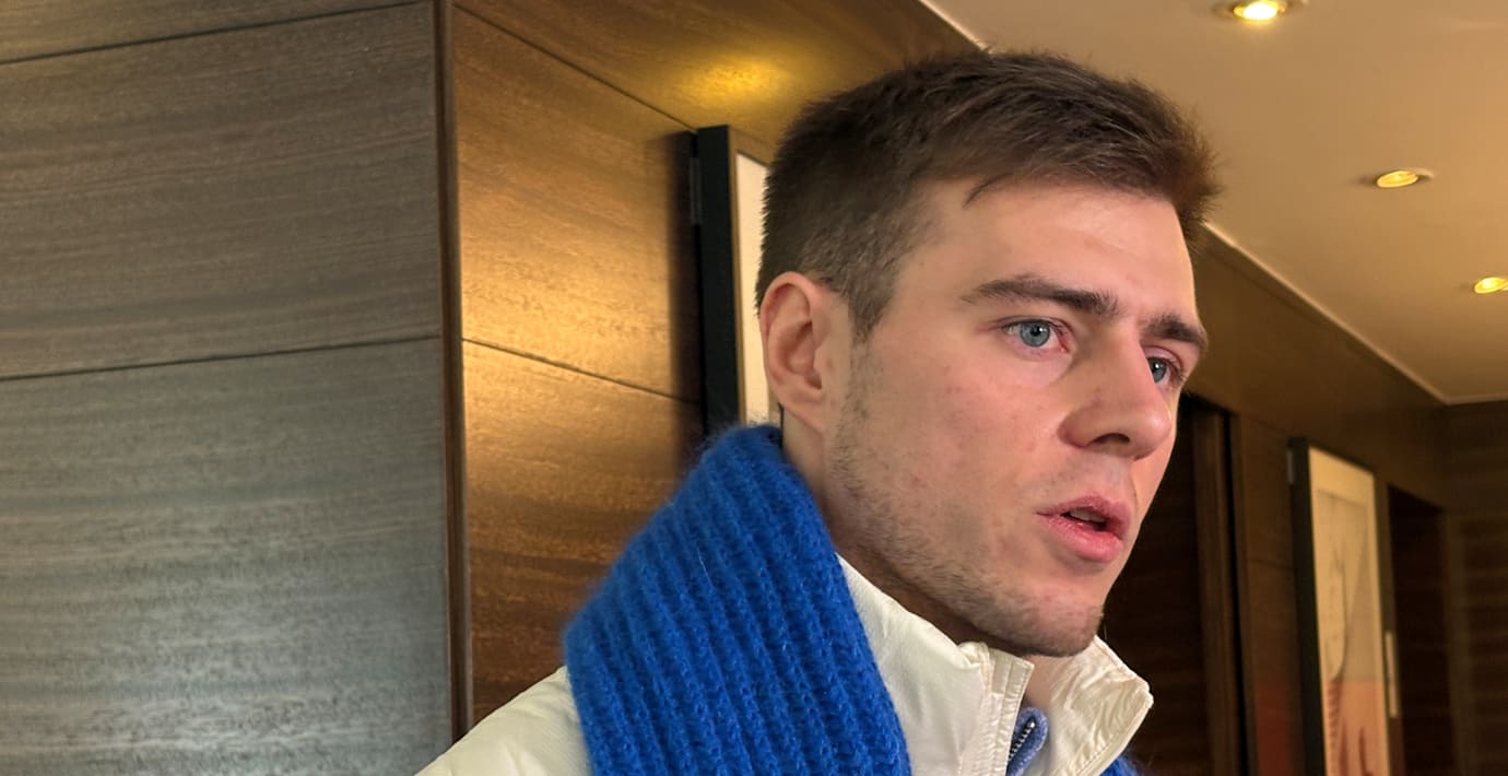 Ukrainaren bar en hjälm med bilder på ukrainare som dödats i kriget. Internationella olympiska kommittén (IOK) ansåg att bilderna utgjorde ett politiskt budskap, något som inte är tillåtet.