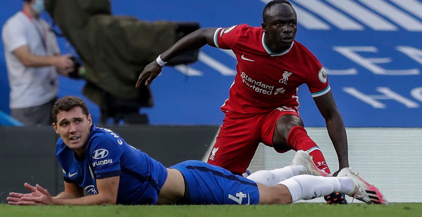 Chelseas danske mittback Andreas Christensen fick rött kort efter att han brottat ner Mané när denne hade friläge.
