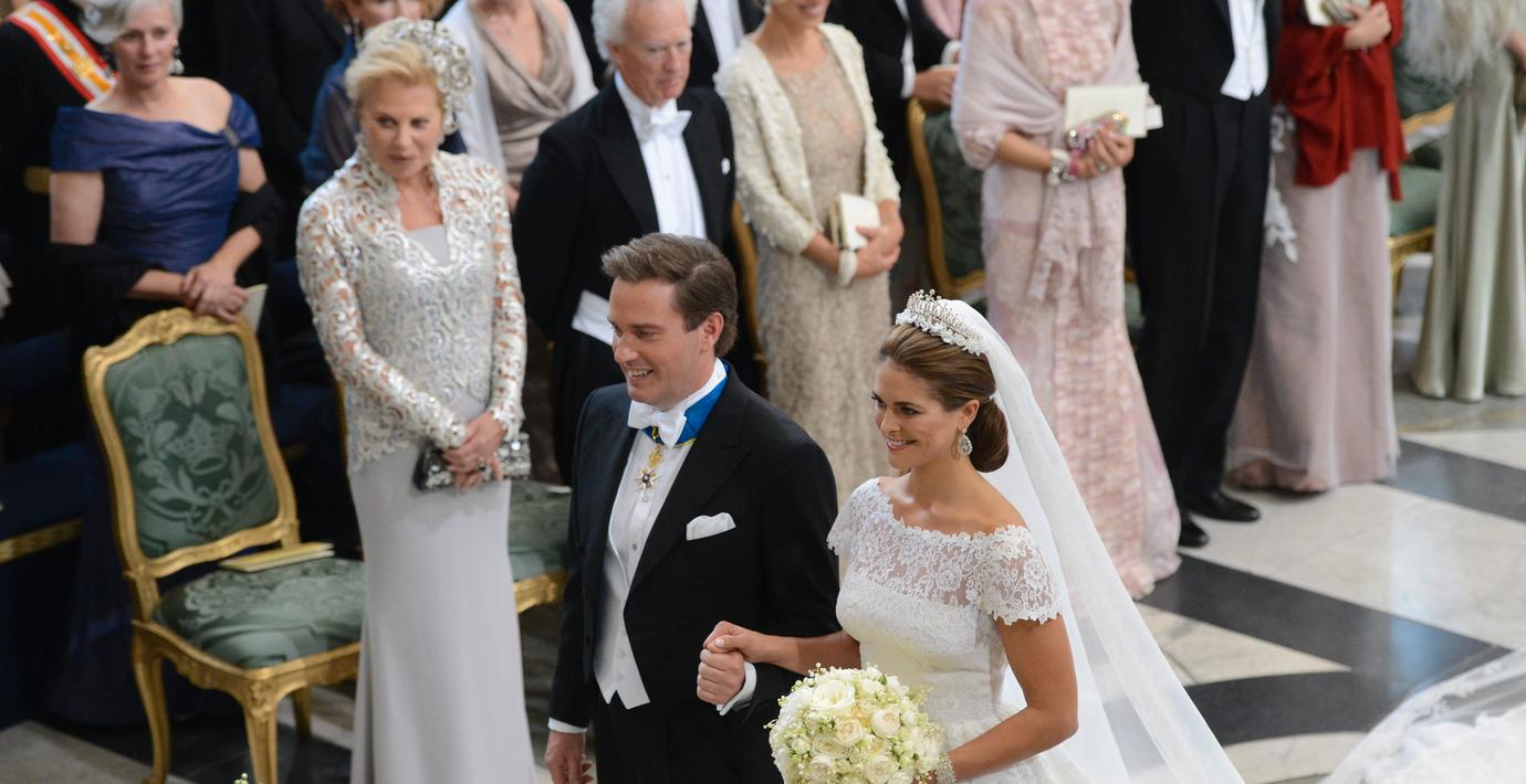 Chris O´Neill såg ut att fälla en tår när prinsessan Madeleine äntrade Slottskyrkan, som var fylld med kungligt och förmöget i kyrkbänkarna. Efter vigseln åkte det nygifta paret till Drottningholm för kvällens avslutande bröllopsfest.