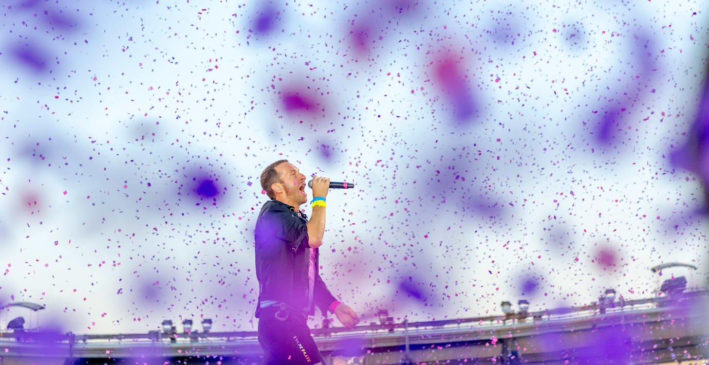 Konfetti i luften, motionscyklar i publikhavet och blinkande armband syntes under konserten, skriver TT.
