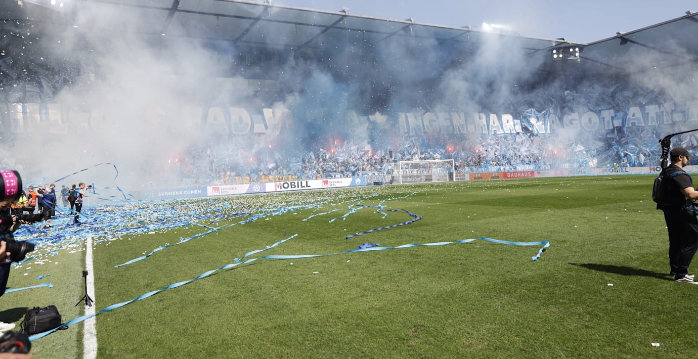 I början av andra halvlek stoppades den svenska cupfinalen mellan Malmö FF och Djurgårdens IF, rapporterar flera medier. Detta sedan säkerhetsnätet vid Djurgårdens supportar gått sönder. Dessutom hade föremål kastats in på planen.