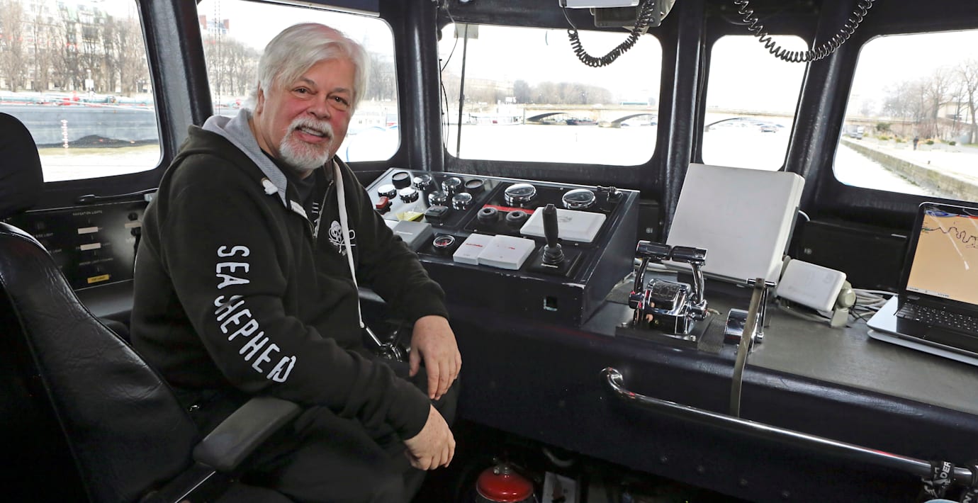 Watson greps på Grönland den 12 juli till följd av en tolv år gammal arresteringsorder från Japan. År 2010 försökte han och hans besättning att hindra japansk valjakt, en jakt som sedermera har blivit olaglig.