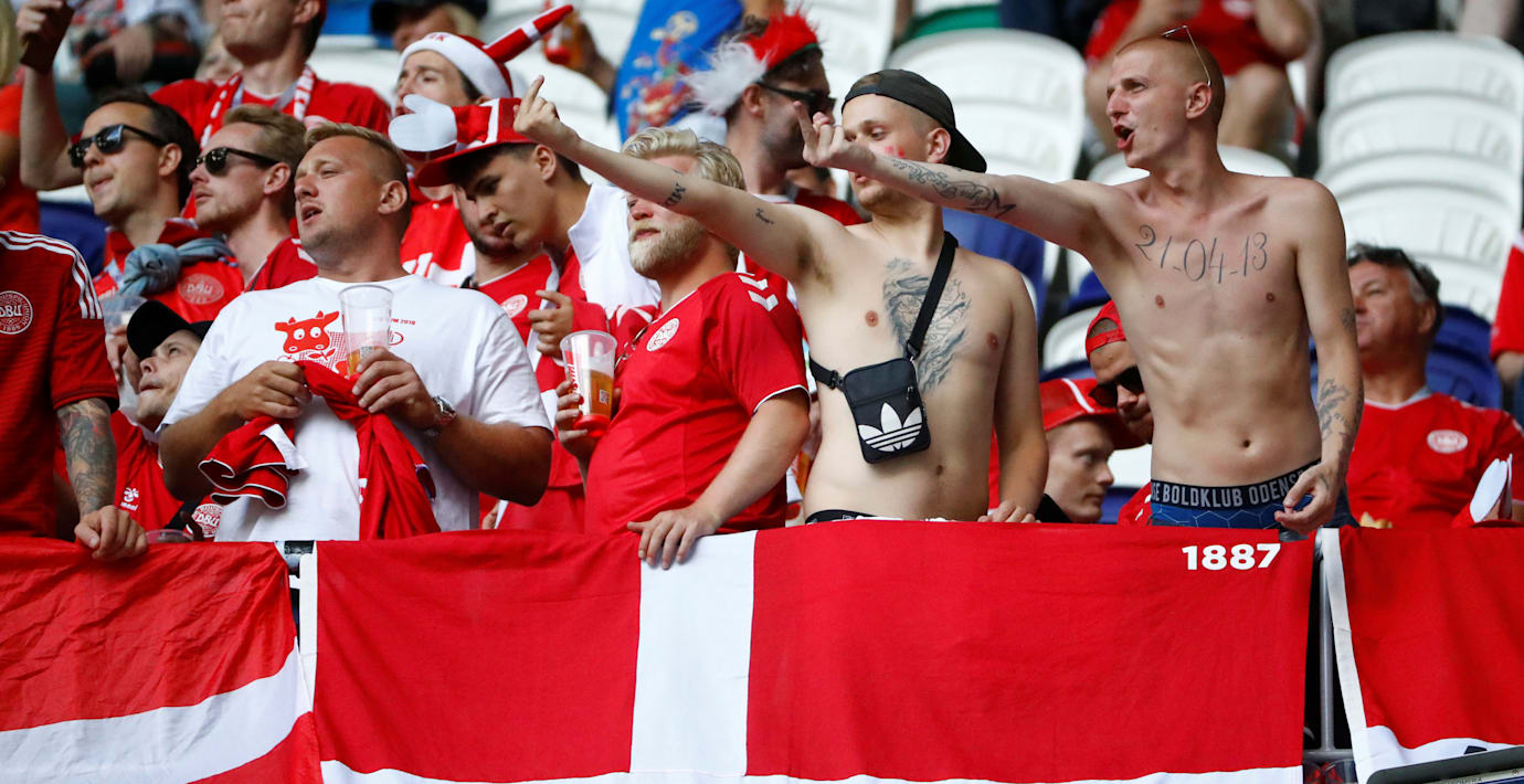 De danska supportrarna ska ha kastat föremål mot Australiens fans och dessutom haft en banderoll med ett sexistiskt budskap.
