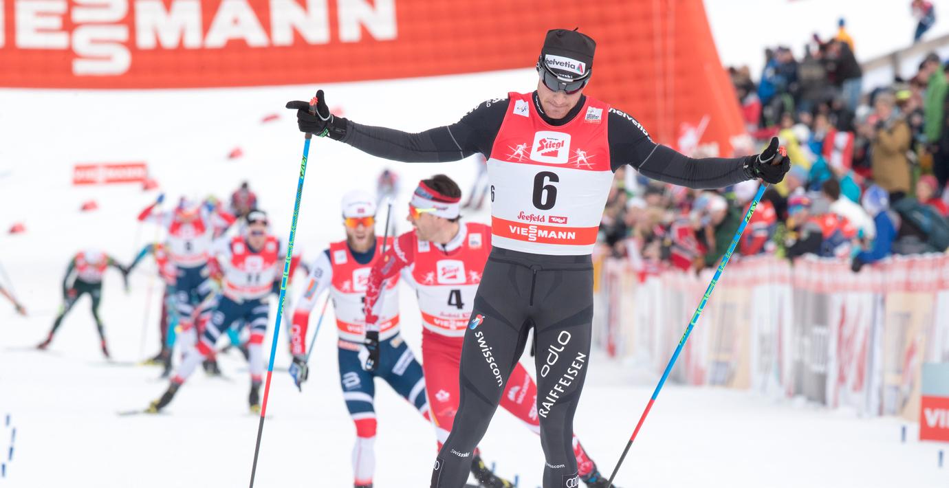 Den meriterade schweizaren och Tour de Ski-segraren ryckte ifrån stora delar av världseliten i sista backen i masstartsloppet över 15 kilometer i fri stil i österrikiska Seefeld och behövde inte förta sig över upploppet. 31-åringen var 1,4 sekunder före kanadensaren Alex Harvey som spurtade ner norrmannen Martin Johnsrud Sundby i kampen om andraplatsen i OS-genrepet.