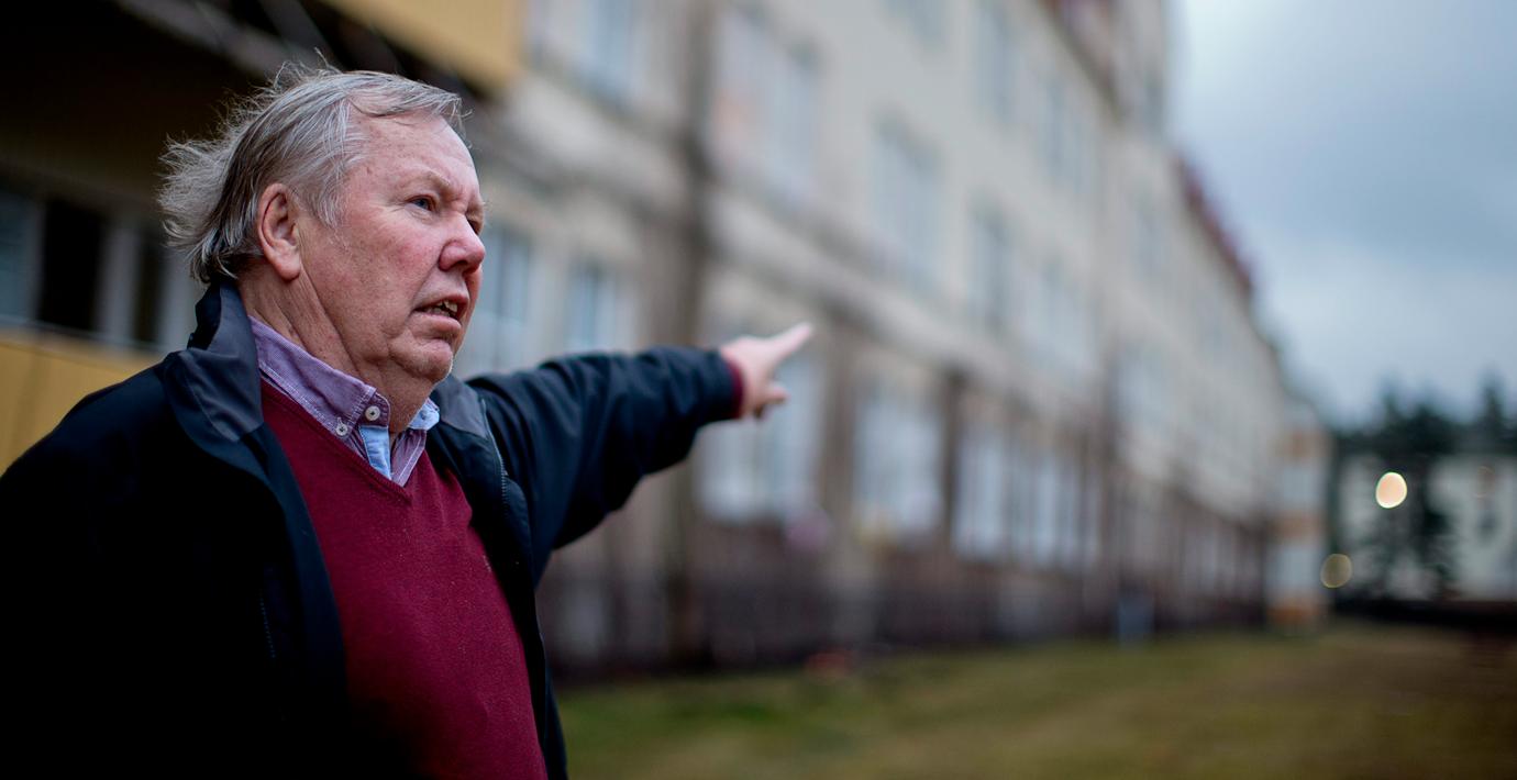 Bert Karlsson äger den flyktingförläggning på Orust där en man på måndagsmorgonen slog sönder inredning. Bland annat revs delar av innertaket ner och en tv och fönster krossades.