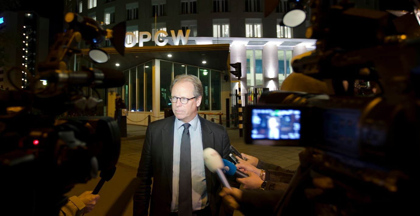 Utrikesminister Carl Bildt (M) verkar nöjd och skriver på twitter att valet verkar tyda på ett start stöd för förbud av kemiska vapen.