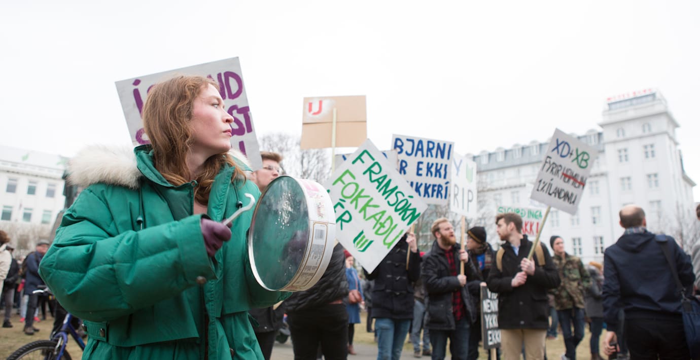 – Vi vill ju att de ska avgå. Men partierna behöver tid på sig för att förbereda sig inför ett nyval, så att låta nuvarande regering avsluta det den håller på med och ha nyval till hösten kan jag köpa, säger Steinn Einar Jonsson, en av demonstranterna, till DN.