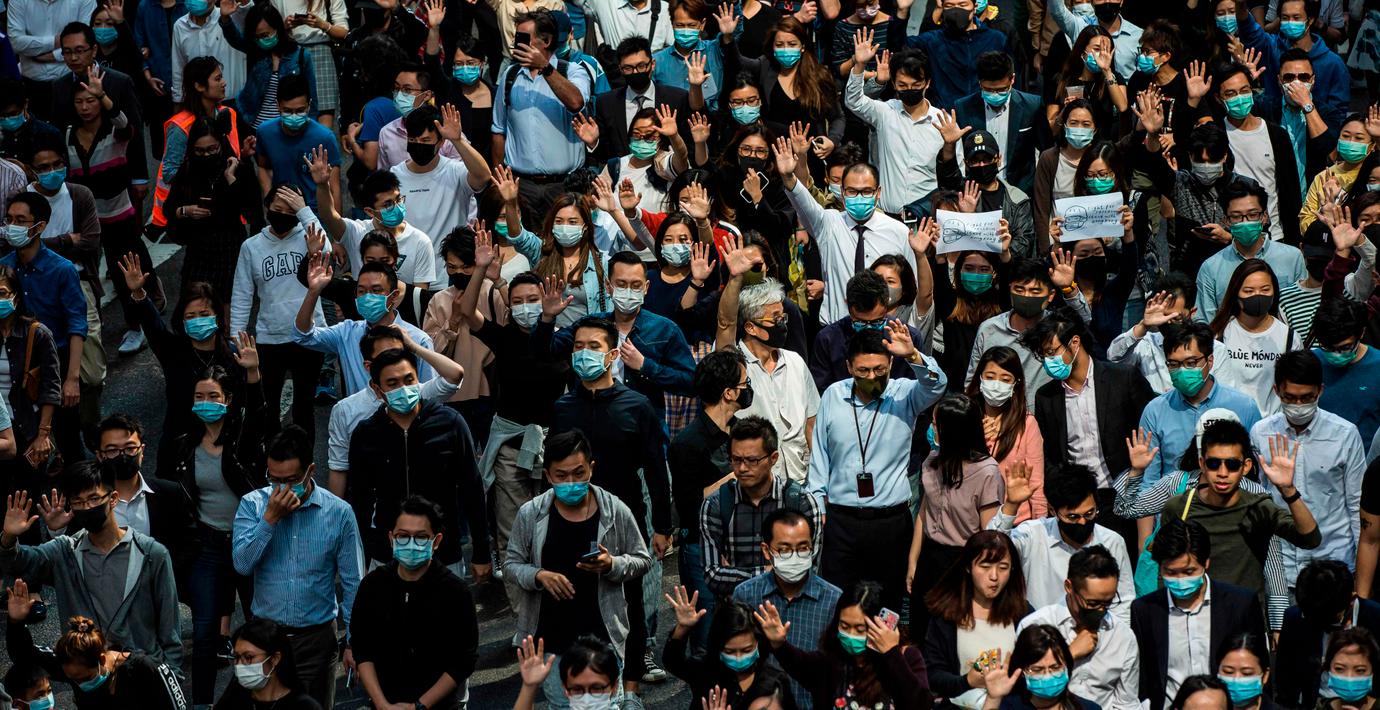 Efter fyra månaders protester har de unga demonstranterna i Hongkong fått allt större stöd från kontorsarbetare, skriver AFP. Propert klädda och iklädda masker har tusentals sådana samlats dagligen den här veckan vid lunchtid, ropandes slagord till stöd för demokratirörelsen och blockerat vissa vägar i Hongkongs affärsdistrikt.