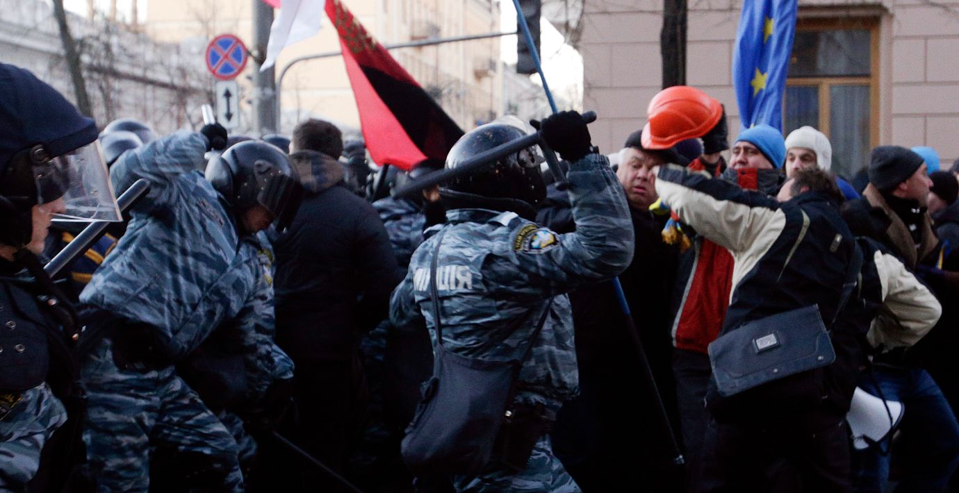Demonstranter ropar ”revolution” – kravallpolis skyddar parlamentet