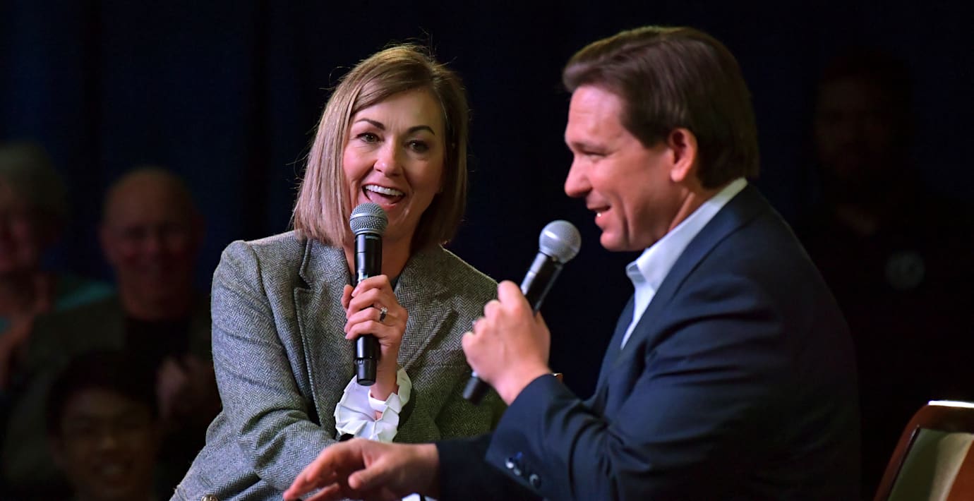 Floridaguvernören Ron DeSantis får stöd av populära Iowa-guvernören Kim Reynolds.