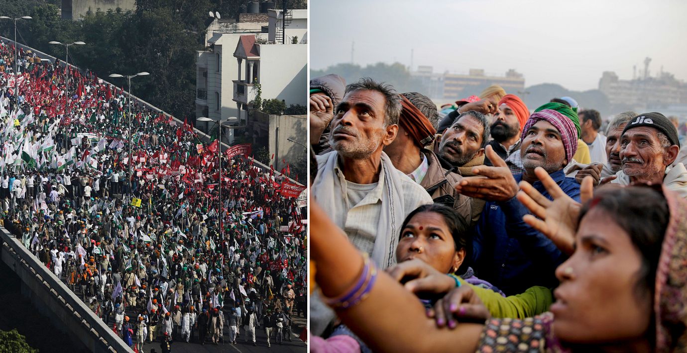 Landets premiärminister Narendra Modi har lovat bönderna dubbla löner till 2022, men ingenting har hänt. Nu hoppas demonstranterna att kunna sätta press på regeringen inför valet nästa år.