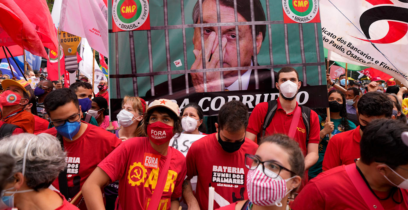 Socialdemokraten Ciro Gomes var en av många i Brasilien som under lördagen gav sig ut på gatorna för demonstrationer med krav på att president Bolsonaro ställs inför riksrätt.