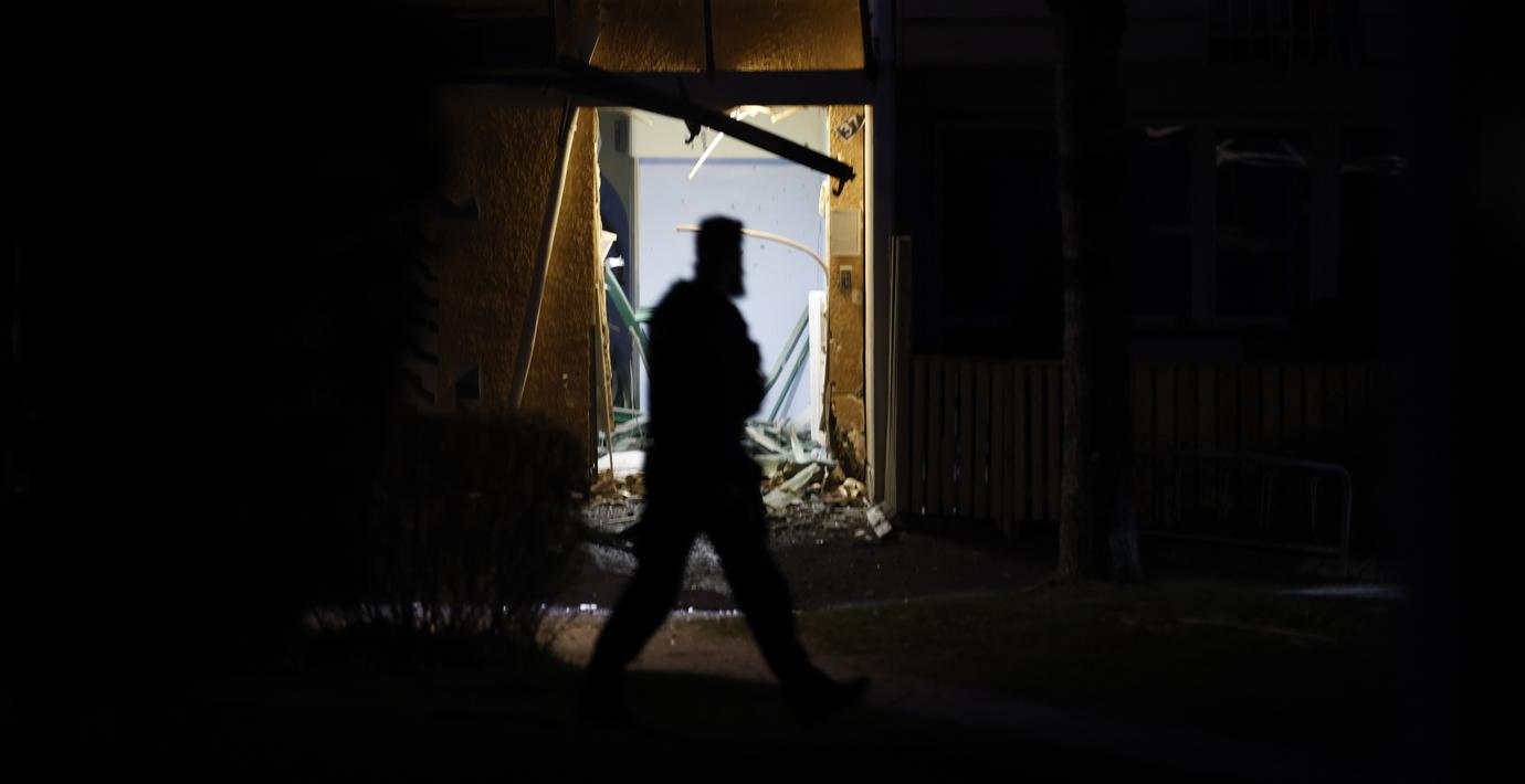 Larmet kom till polis och räddningstjänst vid 01.45. Detonationen utreds som grov allmänfarlig ödeläggelse. Det finns i nuläget ingen gripen.