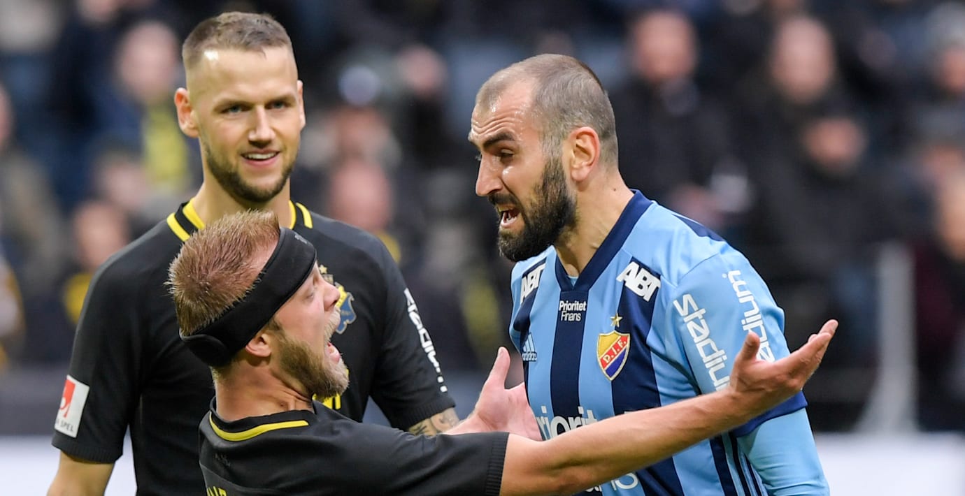 Djurgårdens armeniske nyförvärv Yura Movsisyan kunde ha fått en bättre start på sin tid i allsvenskan. Movsisyan byttes in i den 75:e minuten och en dryg kvart senare fick han rött kort efter att ha måttat en skalle mot AIK:s Daniel Sundgren.