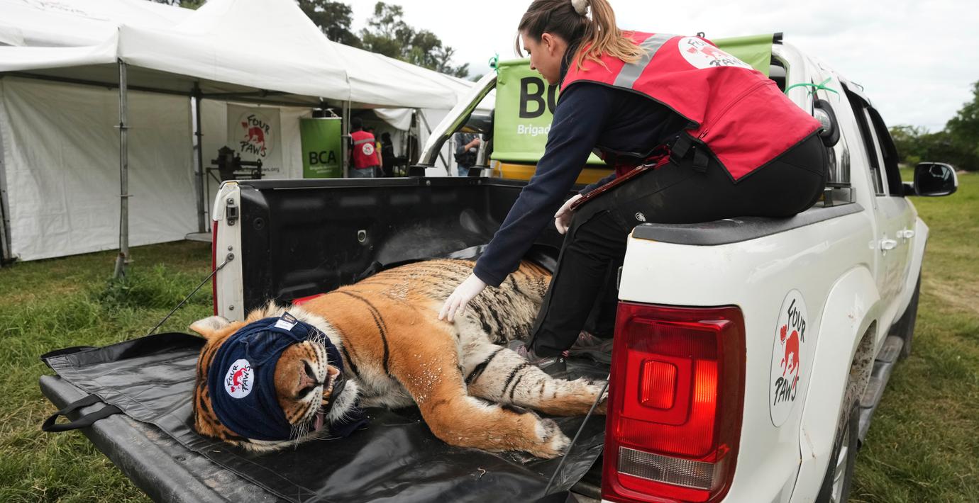 I torsdags deltog djurorganisationen Four Paws i en insats för att ge 64 stora kattdjur och brunbjörnar på Luján Zoo i Argentina vård, fem år efter att parken tvingades stänga.