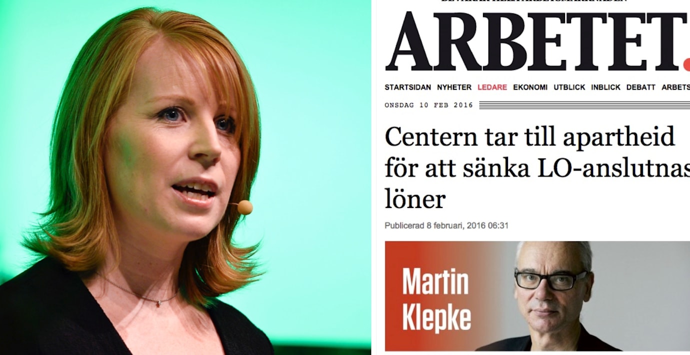 Dagens Nyheters ledarsida är upprörd över en ledare som publicerades i LO-ägda tidningen Arbetet för ett par dagar sedan. De menar att Martin Klepkes text under rubriken ”Centern tar till apartheid för att sänka LO-anslutnas löner” – om C-förslaget om lägre ingångslöner för nyanlända – var ett ”sällsamt journalistiskt haveri”.