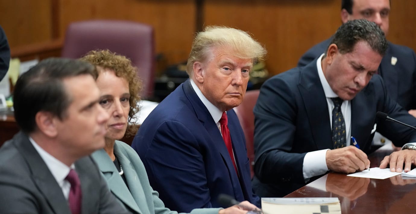 Trump hölls formellt gripen under åtalet men strax efter att åtalspunkterna lästs upp sågs han lämna domstolen i en stor kortege av svarta bilar.