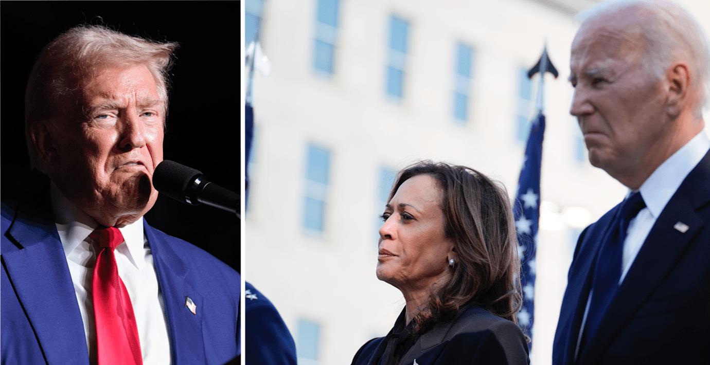 Donald Trump lägger skulden på Biden och Harris