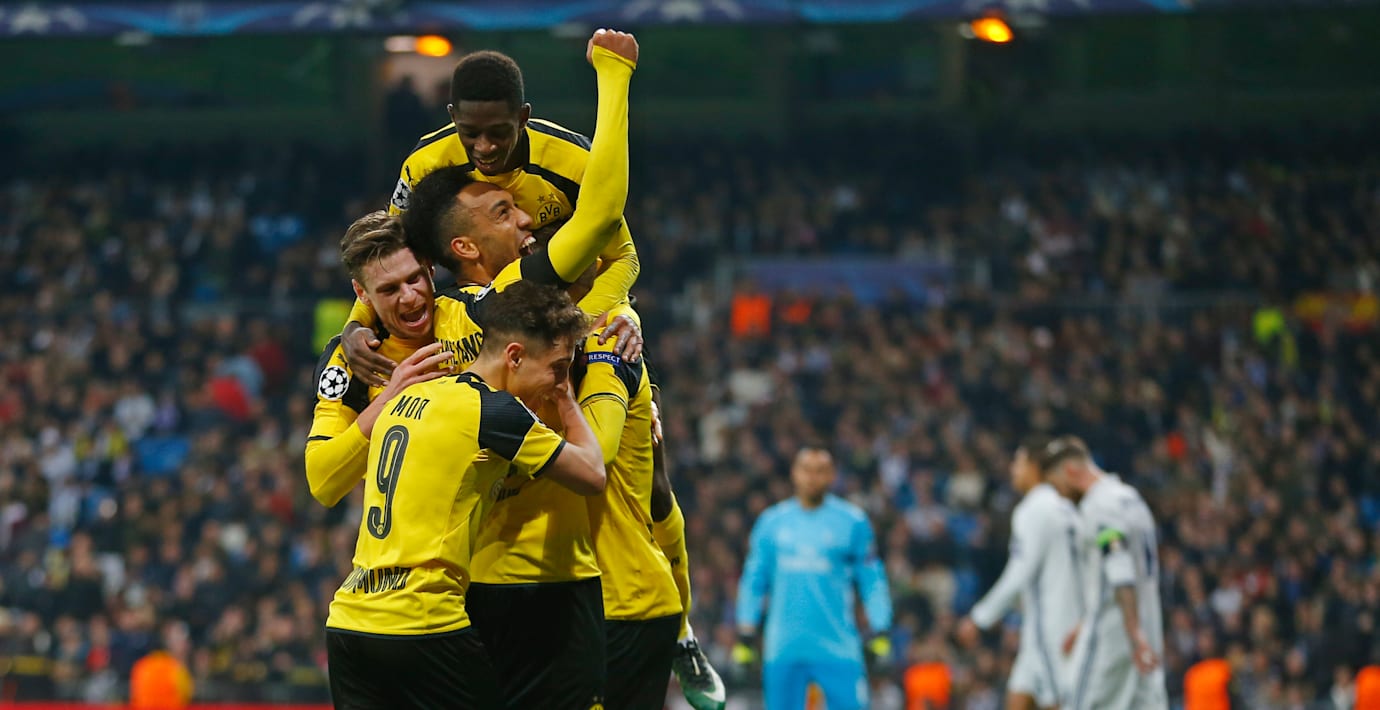 Mästarlaget Real Madrid vara nära att lägga beslag på förstaplatsen i grupp F i kvällens Champions League-möte på hemmaplan. Men i 60:e minuten reducerade Dortmunds Pierre-Emerick Aubameyang, och i slutminutrarna följde Marco Reus efter med 2–2.
