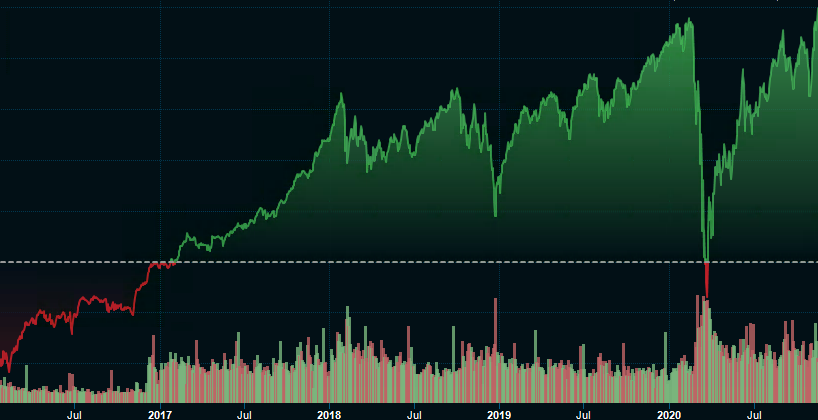Det amerikanska industriindexet Dow Jones har klättrat över nivån 30 000 punkter för första gången någonsin under tisdagen. Milstolpen nås efter en rasande återhämtning under året och indexet bottnade under 19 000 punkter i slutet av mars. Det motsvarar en uppgång på över 60 procent.