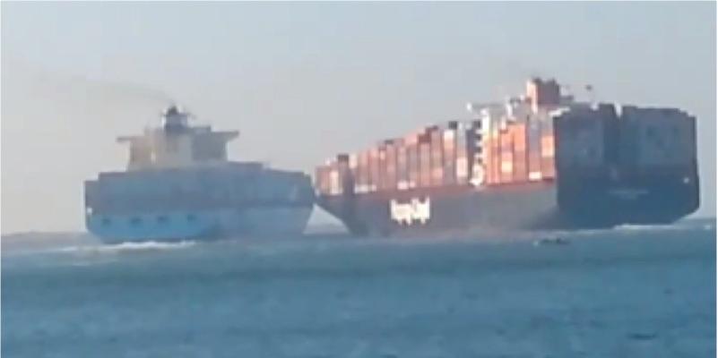 Dramatiska bilder: Två containerfartyg krockar